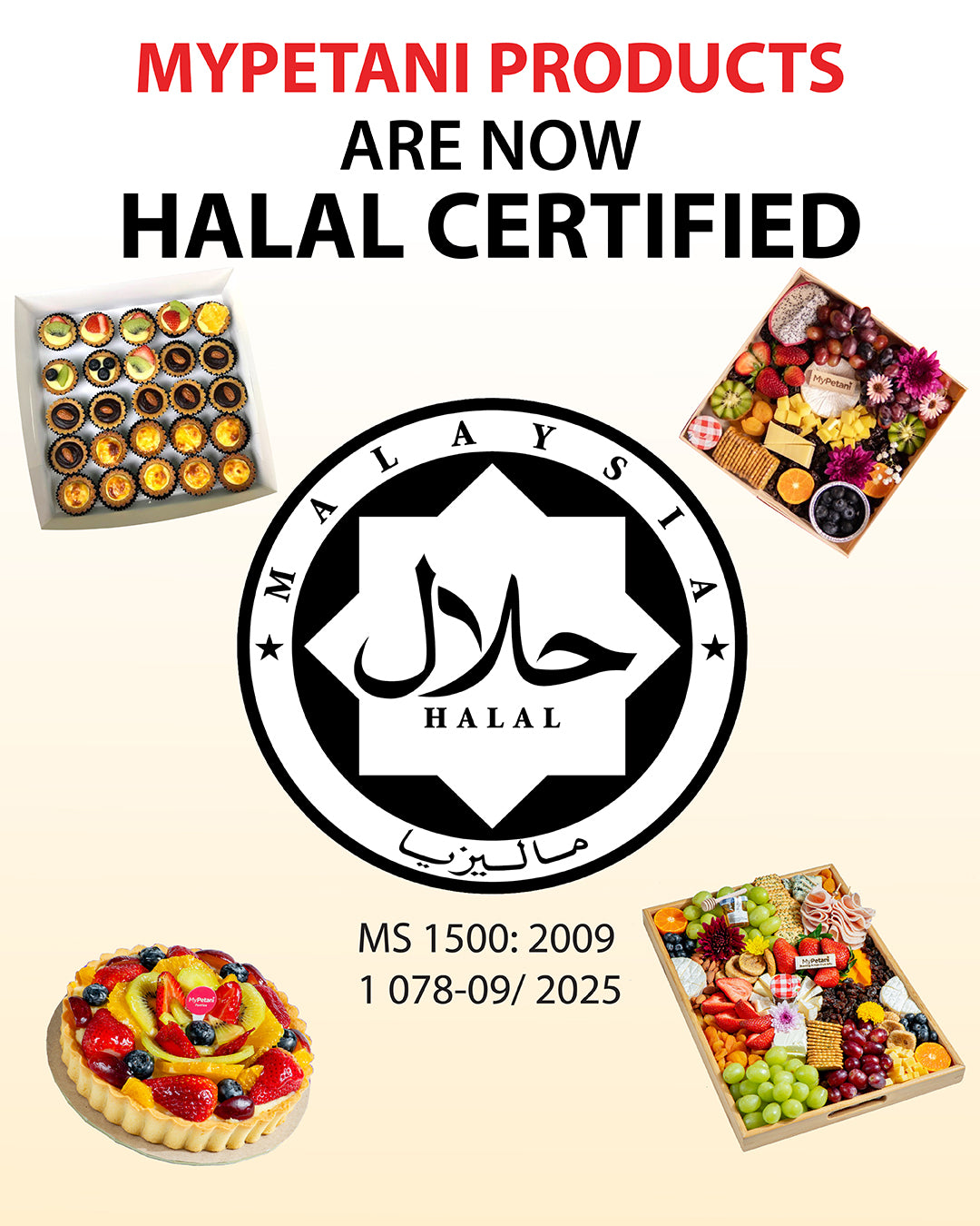 But now, we are so, so proud to announce that our Signature Fruit Platters, Cheese Platters & Tarts are now officially certified Halal by Jakim too!