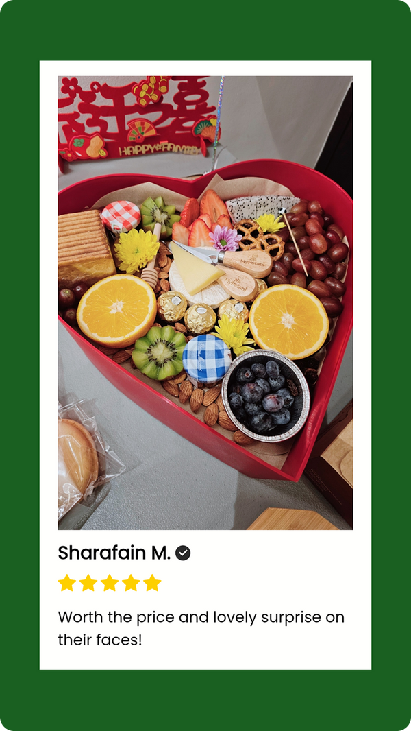 Bought for my mother's birthday, She loved it so much! The charcuterie was beautifully arranged. Delivered on time and arrived safe and sound too. Thank you!️