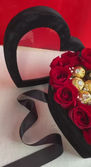 A luxurious and unique gift, beautifully arranged in an elegant box. This distinctive floral presentation stays fresh for days thanks to its floral foam base. More original than a typical bouquet, and more passionate than words could ever express.